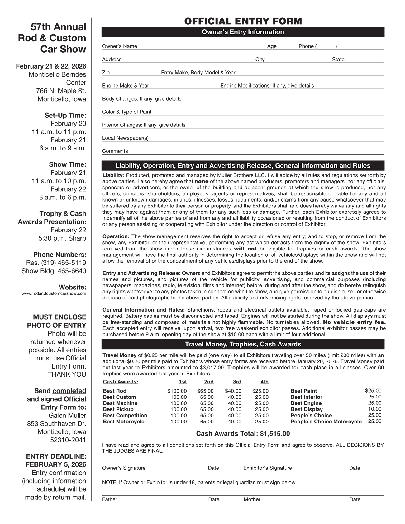 2026 Entry Form – 57th Anniversary Click Here to print, fill out and submit